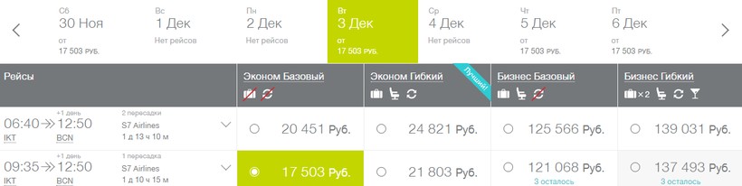 Билеты «туда-обратно» в декабре обойдутся вам всего в 55 999 рублей, а в сентябре придется заплатить за них не менее 151 286 рублей. В среднем же, долететь до Барселоны и вернуться в Иркутск можно за 79 180 рублей.