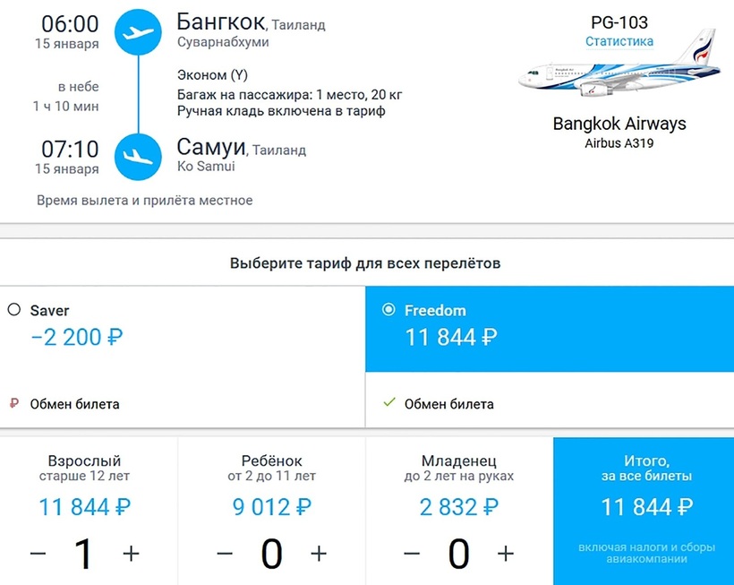 За авиабилет на самолет Bangkok Airways вы заплатите еще 12000 ₽.