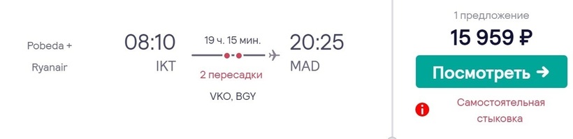 Другие варианты перелета можно посмотреть у авиакомпаний: