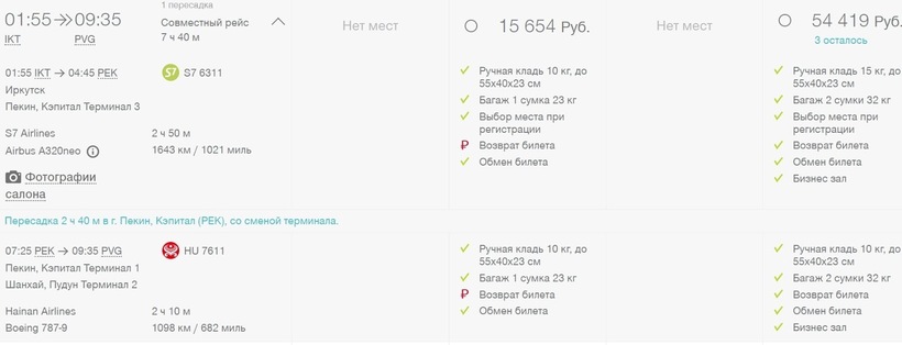 S7 Airlines (S7 6325) Boeing 737-800 | 21:30 Иркутск (IKT) | 4 ч. 40 мин | 02:10 Шанхай (PVG) | 13, 20 октября |