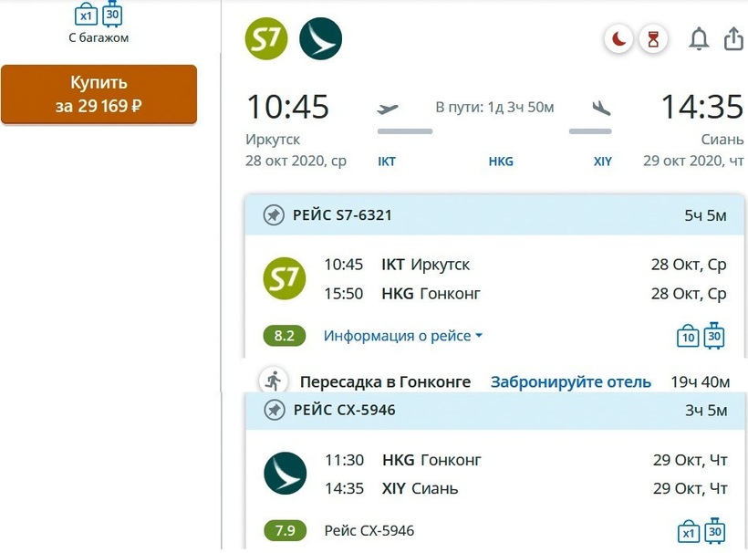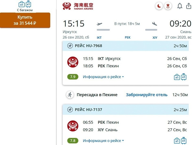 Hainan Airlines, и на 16 ч., чем с S7 и Cathay Dragon. Я