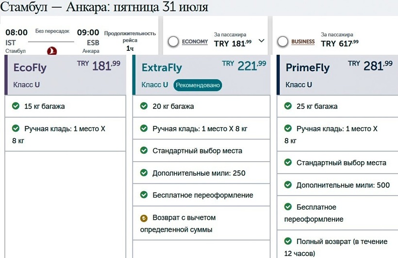 Учитывая разнообразие прямых рейсов, которыми преодолеть расстояние получится всего за 1 ч., лететь транзитом по маршруту нецелесообразно. В ближайшие дни из описанных перевозчиков рекомендую выбрать полет с Turkish Airlines или Pegasus, цены у которых сопоставимы, но ниже на 800–1500 ₽, чем у AnadoluJet. Если бронировать авиаперелет за большой срок до даты путешествия, однозначно советую лететь с лоукостером Pegasus, стоимость билетов у которого ниже на 1000–1500 ₽, чем у двух других упомянутых авиакомпаний. Я покупала авиабилет примерно за неделю до отправления и выбрала полет с «Турецкими авиалиниями». Кстати, напомню, только у этого перевозчика доступен бизнес-класс.