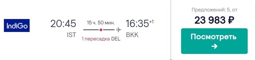 Отмечу, что у IndiGo вполне удобное расписание. Отправление из Нового аэропорта Стамбула вечером (не слишком поздно). Прибытие в Бангкок на следующий день ближе к вечеру. Не забывайте, что между населенными пунктами разница во времени составляет 4 часа. Получается, что транзитный перелет примерно в два раза дешевле, чем прямой рейс Turkish Airlines — экономия приличная. Также к плюсам отнесу и то, что можно отдохнуть от нахождения в воздухе.