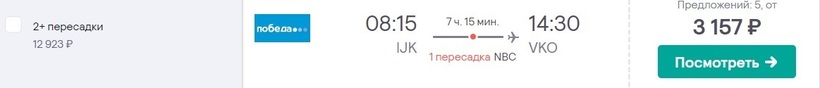 | Россия (FV 6376) Сухой Суперджет 100 | 07:30 Ижевск (IJK) | 1 ч. 50 мин | 08:20 Москва (SVO) | 29 ноября |