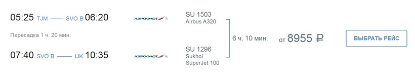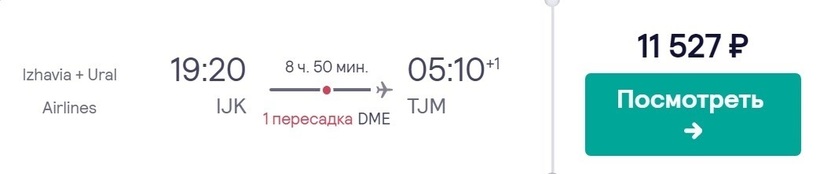 Ижавиа (I8 4223) ЯК-42 | 04:40 Ижевск (IJK) | 1 ч. 20 мин | 07:00 Тюмень (TJM) | только 24 августа |