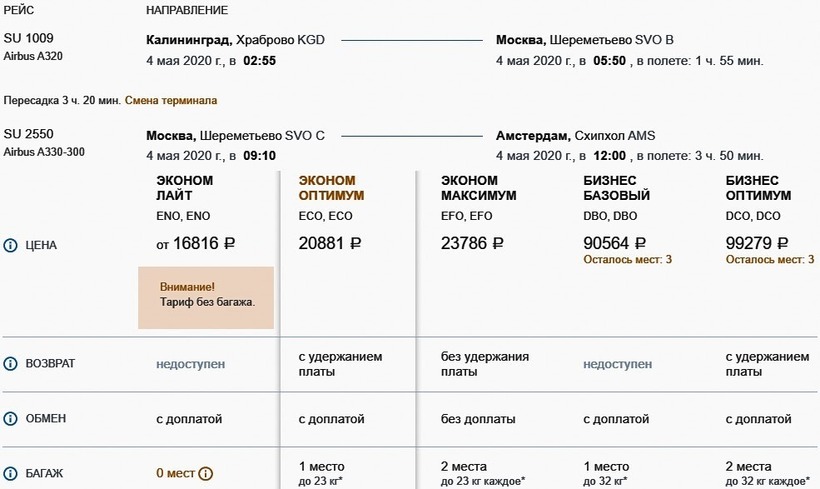 Рейсы Калининград — Амстердам осуществляют следующие авиакомпании: