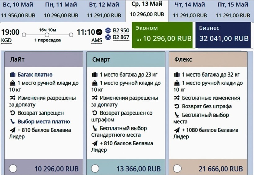 Несмотря на то, что между Калининградом и столицей Нидерландов прямые перелеты не осуществляются, сообщение между городами могу назвать достаточно развитым, потому что ежедневно по маршруту выполняется несколько десятков транзитных авиарейсов. К наиболее удобным отнесу полеты с одной пересадкой с компаниями: