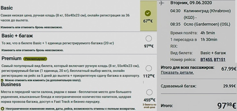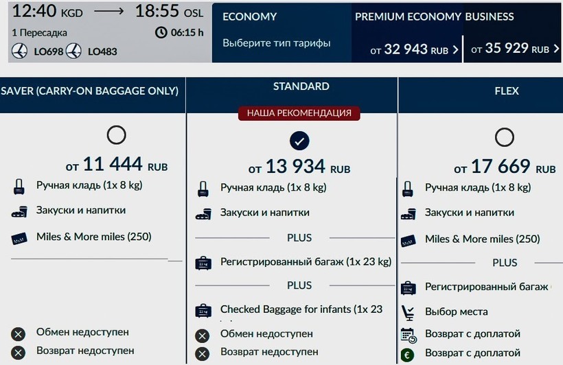 В летне-осеннее время однозначно рекомендую полет с компанией airBaltic, потому что время в пути с ней минимальное, а также авиабилеты туда-обратно с багажом дешевле на 16500 ₽, чем у «Аэрофлота», и на 2500 ₽, чем у LOT. Я летала по направлению весной, поэтому выбрала путешествие на крыльях польского оператора, у которого цена авиабилетов в обе стороны ниже аэрофлотовской на 15000 ₽ (только туда — на 9500 ₽). Рекомендую предпочесть LOT и любителям бизнес-класса, стоимость полета в котором у польского оператора самая невысокая (круглый год). А перелет с «Аэрофлотом» придется выбирать в те дни, когда другие авиакомпании рейсы не выполняют.