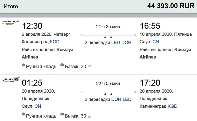 Билеты «туда-обратно» в ноябре обойдутся вам всего в 65 062 рубля, а в августе придется заплатить за них не менее 132 246 рублей. В среднем же, долететь до Сеула и вернуться в Калининград можно за 83 991 рубль.