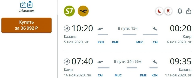 Билеты «туда-обратно» в октябре обойдутся вам всего в 37 499 рублей, а в июне придется заплатить за них не менее 68 490 рублей. В среднем же, долететь до Каира и вернуться в Казань можно за 50 323 рубля.