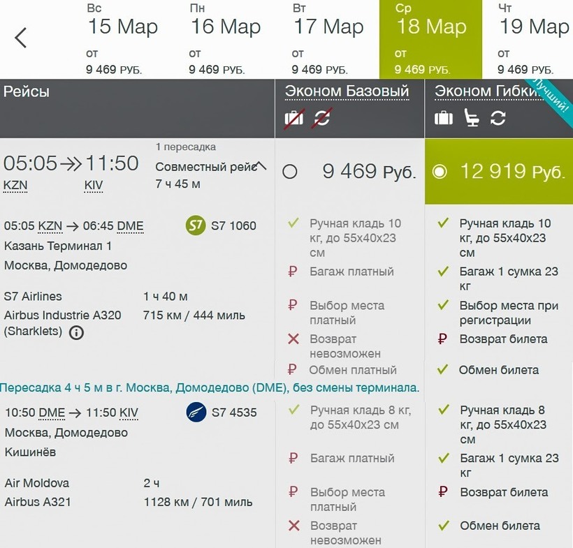 и за счет длительной пересадки в 12,5 часов полет занимает 18,5 ч. Такой вариант