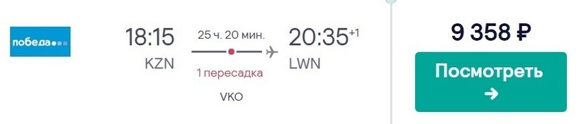 У лоукостера советую купить тариф «Выгодный». Он также включает ручную кладь и багаж (весом до 20 кг). Ручную кладь по весу лоукостер не ограничивает, она только должна свободно поместиться в калибратор. Его параметры: 36х30х27 см. Авиапутешествие только с лоукостером «Победа» подойдет в том случае, если по пути в Гюмри захотите заодно посетить и Москву. Например, прогуляться по Старому Арбату или сходить в Третьяковскую галерею. Продолжительность транзитного перелета с лоукостером — немногим более суток. На стыковку выделяется 21 час. Аэропорт прибытия и отправления — Внуково. Стоимость самого перелета невысокая — от 9300 рублей (за месяц).