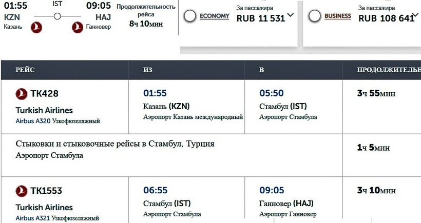 Прямые рейсы по маршруту не выполняются, поэтому преодолевать расстояние между Казанью и немецким Ганновером придется транзитом. Удобные варианты стыковочных авиаперелетов с одной пересадкой предлагают только две компании: