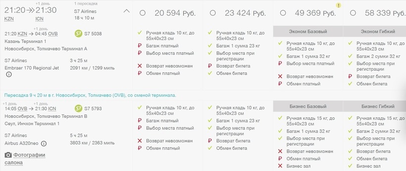 Также долететь до Сеула можно с S7 (стыковка в Новосибирске). Билеты за пару недель можно купить за 20600 рублей. Правда, у а/к нестабильное расписание и пересадка в аэропорту Толмачёво может длится от пяти часов до практически суток.