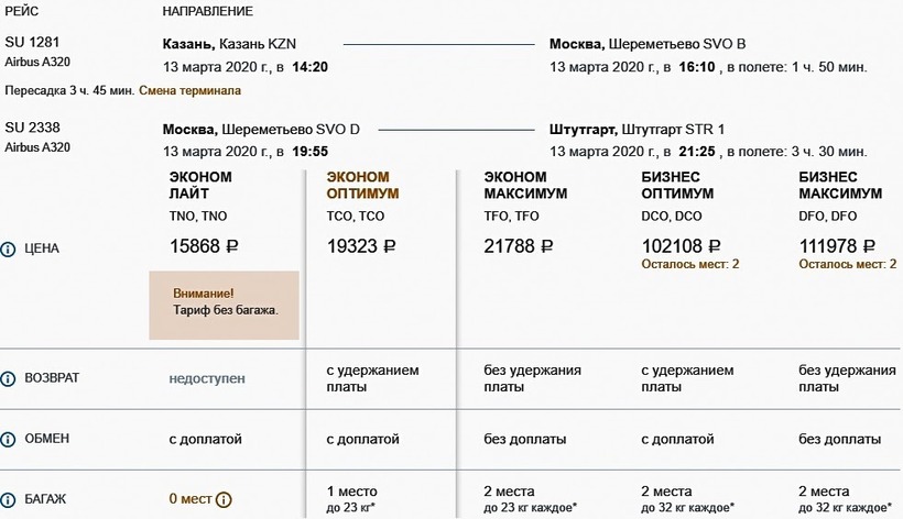 и у «Аэрофлота», цены у турецкого