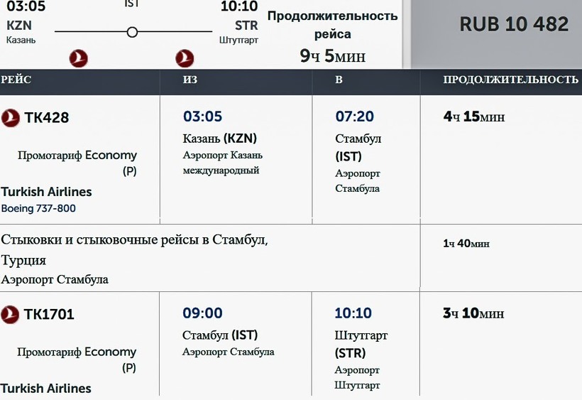 стыковки в 1 ч. 40 минут в Стамбуле общее