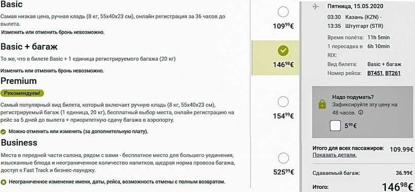 Тем, кто летит по маршруту в летний период, советую преодолевать расстояние между городами с airBaltic, потому что эта компания предлагает самые дешевые авиабилеты как с багажом, так и с ручной кладью. Но, напомню, рейсы сезонные и не ежедневные. Я хоть и летала по направлению в период выполнения авиарейсов латвийским перевозчиком, предпочла полет с «Турецкими авиалиниями». Цена билетов туда-обратно с багажом у авиакомпаний одинаковая (но ниже аэрофлотовской на 8000 ₽), зато время в пути с Turkish Airlines тратится на 2 часа меньше, чем с airBaltic. Любителям путешествовать в бизнес-классе в летнее время дешевле всего обойдется полет с airBaltic, а в остальное время года — с Turkish Airlines, у которой разница в стоимости с аэрофлотовской составляет 10500 ₽.