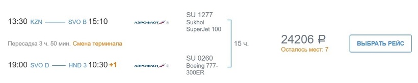 Я купила билеты на транзитные рейсы «Аэрофлота». Перевозчик предлагает удобный по времени (15 часов) и приемлемый по стоимости перелет до Токио. Также для меня было важно то, что вылет и прилет в удобное время: отправление из Казани в обед, в конечном пункте окажетесь утром (не слишком рано, по местному времени). Это дает возможность до авиагавани, а потом и из нее добраться на общественном транспорте, не тратя деньги на такси.