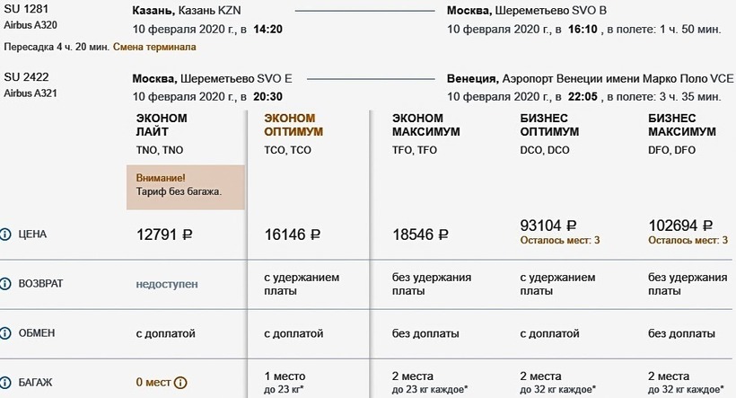 с ценой «Аэрофлота», но на 1500 ₽ дешевле,