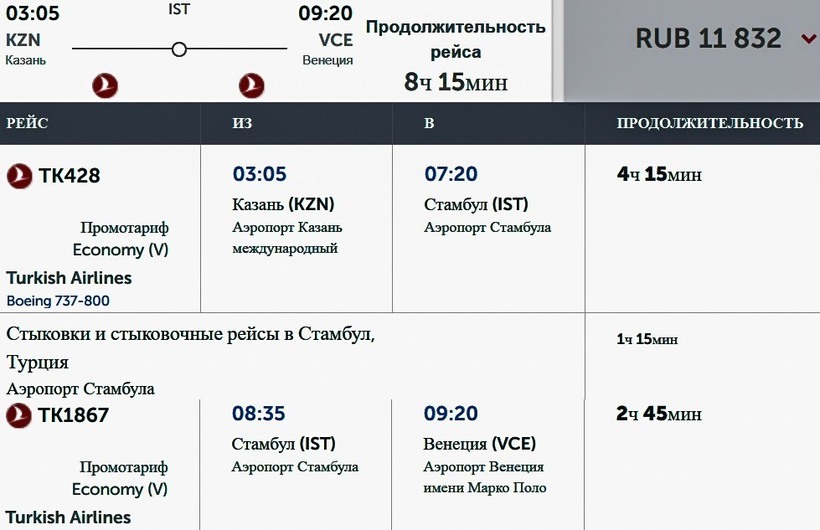 Актуальное расписание прямых рейсов из Казани в Венецию поможет вам подобрать оптимальное время и дату вылета.