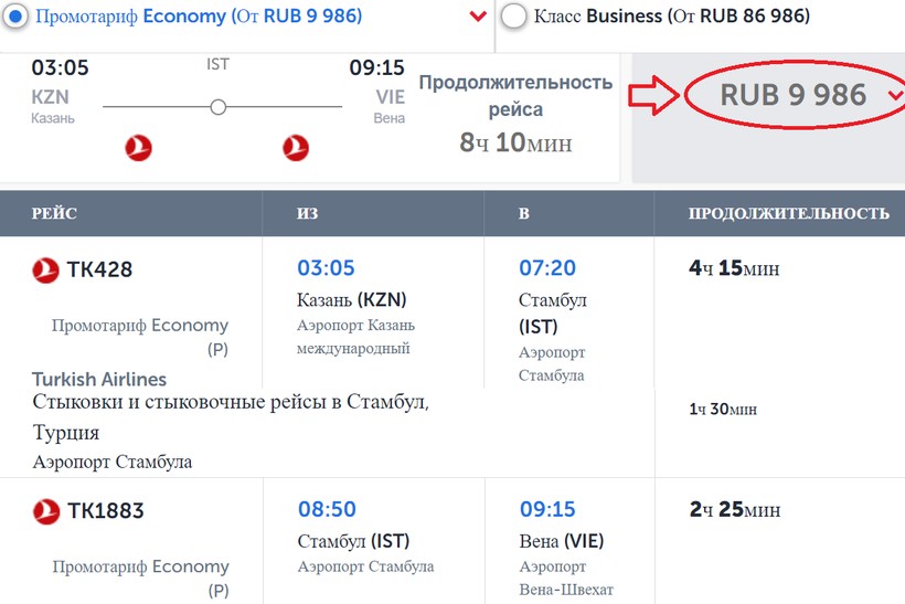 Для максимально комфортного путешествия можно выбирать между «Турецкими авиалиниями» и «Аэрофлотом», потому что стоимость полета в бизнес-классе у них сопоставима (разница всего в 2000 ₽).