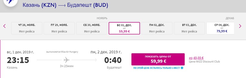 Плюсом венгерского лоукостера считаю низкие цены. Однако не могу назвать его расписание удобным — вылеты есть только два раза в неделю, по средам и воскресеньям. Продолжительность полета составляет около 13 часов. Лайнер до Будапешта, где и будет стыковка, отправляется из Казани поздно вечером.