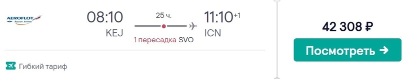 Попасть в столицу Южной Кореи из Кемерово можно только транзитом — прямого авиасообщения между городами нет. Например, можете рассмотреть вариант перелета с «Аэрофлотом». Дорога до места назначения займет немногим более суток. Главный авиаоператор России доставляет через Москву. Стыковка в столице продлится 12 часов. Прибудете в аэропорт Шереметьево утром. Конечно, можно не сидеть все время в воздушной гавани, а съездить на экскурсию в город (прогуляться по Красной площади или Старому Арбату). Удобно, что на дорогу туда и обратно на комфортабельных аэроэкспрессах потратите 1,5 часа (общее время в пути). Билеты на электропоезд можно купить в здании аэровокзала. Теперь про стоимость авиабилетов. За 3 месяца до вылета цены на них стартуют с 42300 рублей. Если есть возможность приобрести сразу проездной в обратную сторону, так и делайте, потому что получите скидку в размере 20%. Путешествуя с «Аэрофлотом», всегда выбираю тарифный план «Эконом Оптимум».