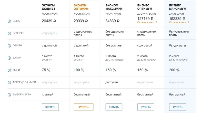 «Максимум». Самый продвинутый тариф экономкласса. Рекомендую тем, кто не уверен, что отправится в авиапутешествие в определенный день — билет возвратный (опция бесплатная).
