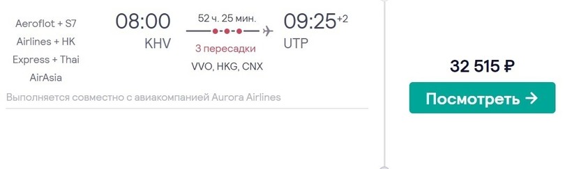 Есть и более дешевый вариант авиаперелета в Паттайю, но он менее комфортный, оперативный, и стыковок будет не две, а три.