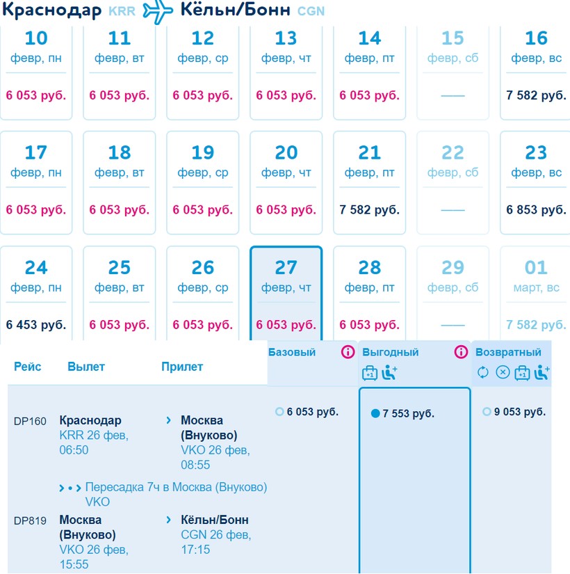 Между Краснодаром и Кёльном прямое авиасообщение не налажено, но преодолеть маршрут можно с одной стыковкой на крыльях трех следующих компаний: