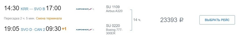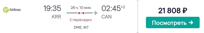 Если говорить про перелеты с двумя стыковками, то как более бюджетный способ добраться до конечного пункта их рассматривать можно, как более быстрый и комфортный — нет. Так, например, у S7 есть транзитный перелет до Гуанчжоу через Москву и Иркутск. Общая продолжительность пути — сутки и два часа. На пересадки уйдет 13,5 ч. Билеты — от 21800 рублей (за три месяца).