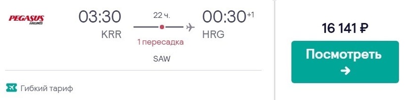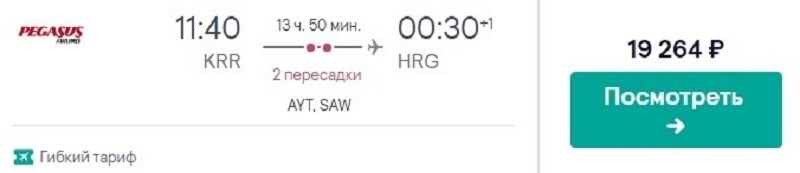 В отличие от Pegasus Airlines этот авиаоператор можете предложить как эконом, так и бизнес-класс. Тарифы различаются не только ценой, но и набором опций. Перелеты с двумя стыковками можно рассматривать не как более дешевый способ попасть в Хургаду, а как более быстрый. Так, например, перелет с тем же Pegasus Airlines через Анталью и Стамбул займет в общей сложности 14 часов. Из этого времени на стыковки уйдет 8 часов. Стоимость билетов в одну сторону — 19200 рублей (цена за 2,5 месяца до вылета). Обратное авиапутешествие с Pegasus Airlines обойдется примерно в такую же сумму.