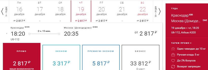 Уральские авиалинии (U6 110) Airbus А320 | 15:55 Краснодар (KRR) | 3 ч. 35 мин | 19:30 Москва (DME) | ежедневно с 12.10 по 25.10 |