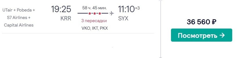 Есть еще более дешевый вариант авиаперелета, но он одновременно более долгий и менее комфортный (три пересадки). Дорога до Саньи займет 2,5 суток. Авиаперевозчики: «ЮТэйр», «Победа», S7, Capital Airlines. На стыковки в Москве, Иркутске и Пекине уйдет около двух суток. Билеты — от 36500 рублей (цена актуальна за 1,5 месяца).