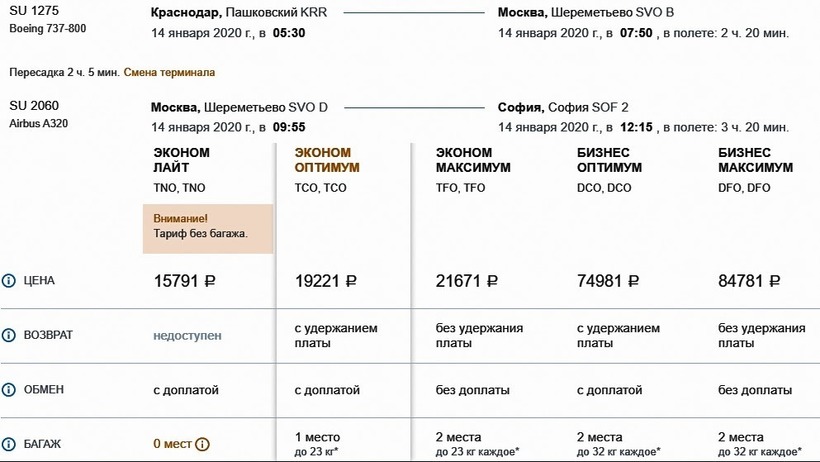 Что касается цен, билеты у компании довольно дорогие. Я предпочитаю бронировать авиаперелет с багажом (по тарифу «Оптимум»). Только туда он стоит от 19500 ₽, в обе стороны — от 28500 ₽. Бизнес-класс — от 75000 ₽.