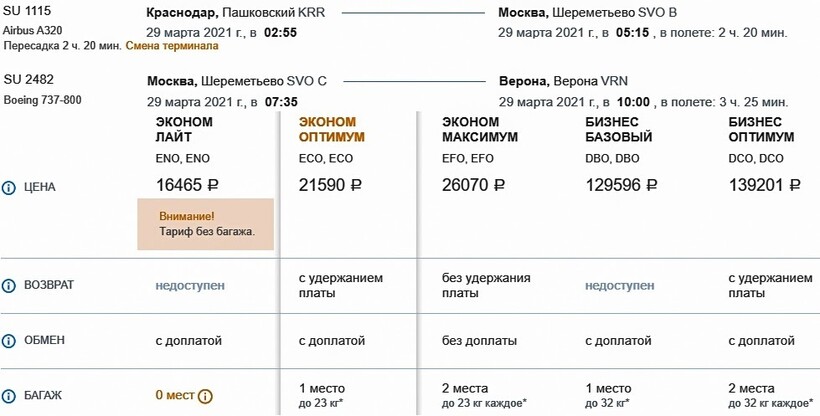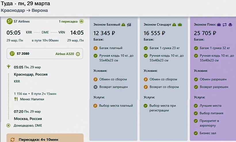Из российского Краснодара в знаменитый итальянский город Ромео и Джульетты прямые авиаперелеты не совершаются, а удобные транзитные рейсы с одной непродолжительной стыковкой по маршруту выполняются лишь двумя авиаоператорами:
