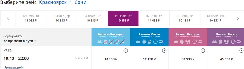 Подведу итог по возможным вариантам авиаперелета из Красноярска в Сочи: когда дата моего путешествия совпадает с графиком полетов NordStar, я отдаю предпочтение этому оператору, ведь преодолеть маршрут с ним можно максимально быстро. В весенне-летний период конкурировать с этой авиакомпанией может «Аэрофлот» — хотя билеты у него дороже, зато расписание удобнее.