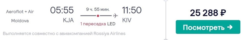 Долететь прямым самолетом из Красноярска в столицу Молдовы не получится. Приготовьтесь лететь транзитом и потратить на дорогу не менее 10 часов. За такое время до места назначения вас доставят компании «Россия» и Air Moldova. Пересадка будет в Санкт-Петербурге (аэропорт Пулково), на нее уйдет 2,5 часа. Стоимость перелета в одну сторону — от 25300 рублей (за 1,5 месяца). Это так называемые традиционные авиакомпании и они предлагают лететь как экономическим, так и бизнес-классом.