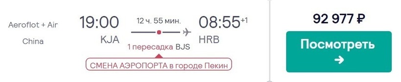 Есть более дешевый, быстрый и удобный вариант (без смены аэропорта). Его предлагают «НордСтар» и Air China. Дорога до Харбина займет 11,5 ч. При этом стыковка будет в аэропорту Пекина Шоуду, и на нее уйдет 5,5 ч.