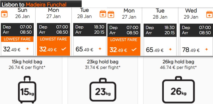| Easyjet (U2 7621) Airbus А320 | 06:00 Лиссабон (LIS) | 1 ч. 50 мин | 07:50 Фуншал (FNC) | 29 октября, 5, 12, 19, 26 ноября, 3, 17 декабря, 7 января, 11, 18, 25 февраля, 4, 11, 18, 25 марта |