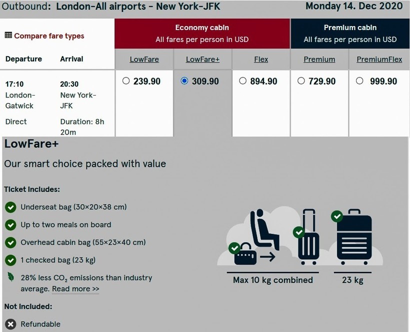 | British Airways (BA 177) Boeing 777-300ER | 12:55 Лондон (LHR) | 8 ч. 05 мин | 16:00 Нью-Йорк (JFK) | 24, 26, 27, 28 декабря |