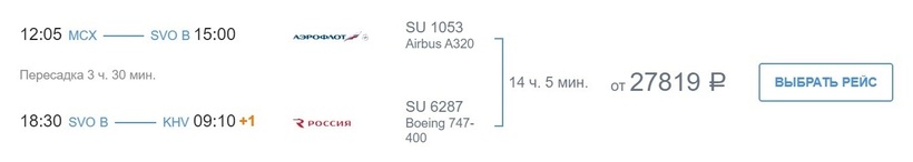 Подводя итог, скажу, что в Хабаровск решила лететь с авиакомпаниями «Аэрофлот» и «Россия». Авиаоператоры предлагают один из максимально быстрых перелетов с одной стыковкой (напомню, что в дороге проведете 14 часов), у них стабильное расписание (рейс доступен ежедневно), есть скидки за единовременную покупку билетов туда-обратно, достаточный выбор тарифных планов (доступны разные классы обслуживания).