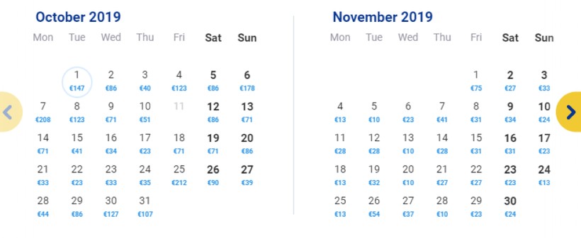 Это ирландская бюджетная авиакомпания. Я выбираю ее, так как у нее самая низкая цена на перелет. При покупке авиабилетов обязательно смотрю соседние даты, ведь можно улететь всего за 10 евро (720 рублей).