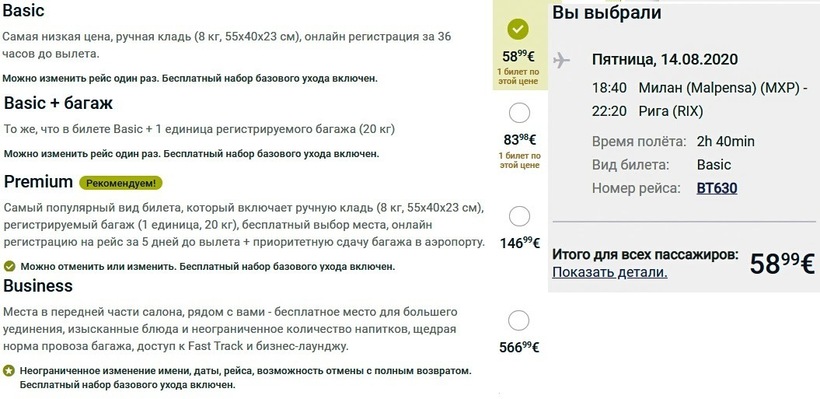 Air Baltic (BT 630) Airbus A220-300 | 12:20 Милан (MXP) | 2 ч. 40 мин | 16:00 Рига (RIX) | пт с 05.06 |