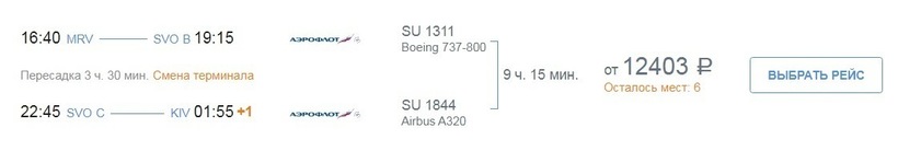 Я приобрела билеты на транзитные рейсы «Аэрофлота». Выбрала перевозчика по соотношению цены и качества. У перевозчика немало рейсов по маршруту Минеральные Воды — Москва — Кишинев. Предпочла самый быстрый. Его продолжительность — 9 часов. Стыковка в столичном аэропорту Шереметьево — 3,5 часа. Потребуется смена терминала. Перелеты выполняются на самолетах Boeing 737-800 и Airbus A320. Не забывайте, что у главной авиакомпании страны есть программа лояльности. Регистрация в ней позволит копить баллы (мили). Впоследствии, при достаточном их количестве, мили можно обменять на премиальный билет.