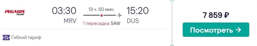 Турецкий лоукостер Pegasus Airlines сможет доставить до конечного пункта быстрее и дешевле. В дороге до Дюссельдорфа проведете 9–14 часов (расписание нестабильное). Из этого времени на стыковку в Стамбуле (аэропорт Сабиха Гекчен) уйдет 3,5–7,5 ч. Перелет доступен каждый день. Стоимость авиабилетов — от 7800 рублей. Чтобы иметь возможность приобрести билеты по такой цене, нужно бронировать их за пару месяцев до вылета. Скидку за единовременную оплату билетов туда-обратно авиакомпания не предоставляет. Как правило, накануне вылета стоимость билетов в 1,5 раза выше.