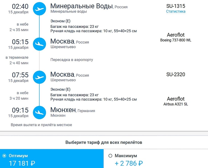 Другие варианты перелета можно посмотреть у авиакомпаний: