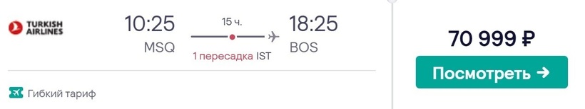 Столицу штата Массачусетс и Минск не связывает прямое авиасообщение. Попасть из одного города в другой возможно только транзитными рейсами, например, с Turkish Airlines. В дороге в общей сложности проведете 15 часов. Из этого времени на стыковку в Стамбуле уйдет 2 часа. Удобно — полетите по единому билету. Повторную регистрацию в Новом аэропорту Стамбула проходить не нужно, багаж забирать тоже, сразу направляйтесь в транзитную зону. Минимальная стоимость транзитного перелета до Бостона — 71000 рублей (за два месяца). Авиаоператор предлагает лететь экономическим или же бизнес-классом. Тарифы отличаются набором опций и ценами.