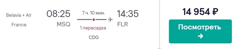 Рейсы Минск — Флоренция осуществляет только одна авиакомпания - Белавиа. Минимальная стоимость билета составит 28 442 рублей.