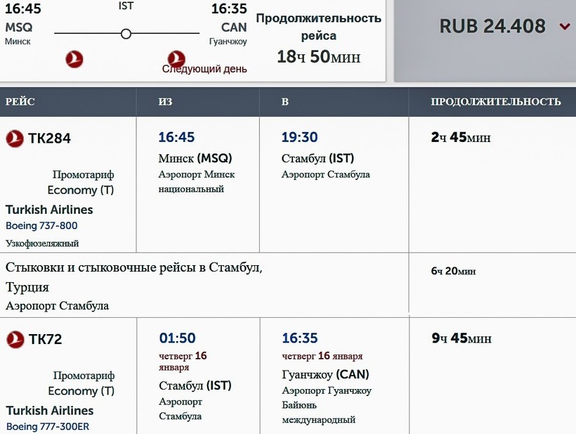 Turkish Airlines. По графику рейсов турецкая авиакомпания уступает российской. С декабря по апрель самолеты летают по направлению во все дни недели, кроме вторника, с июня по октябрь — ежедневно, кроме понедельника и пятницы, в остальной период — только по вторникам, четвергам и воскресеньям. И по времени в пути полет с «Турецкими авиалиниями» дольше — с пересадкой в Стамбуле в 6,5 часа займет почти 19 часов.